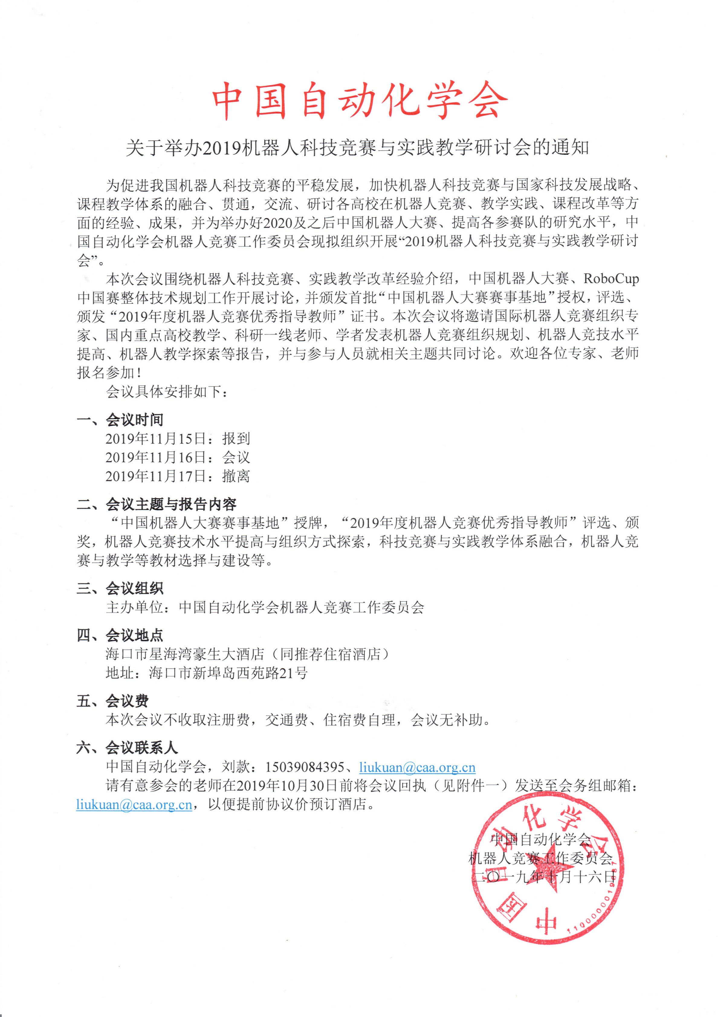下一篇: 关于召开 RoboCup Junior机器人世界杯(中国)技术研讨会暨裁判员、教练员培训的通知
