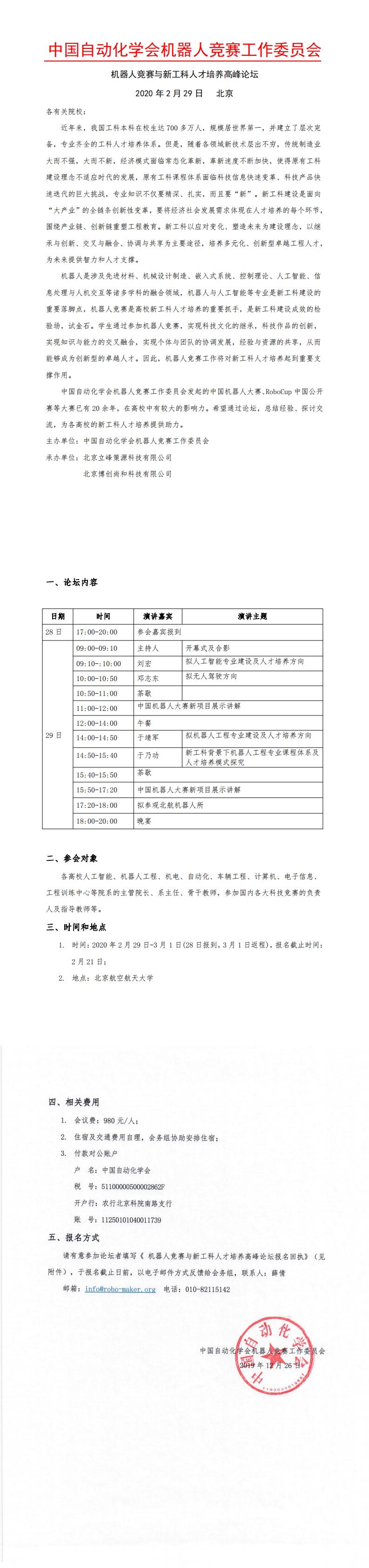 关于机器人竞赛与新工科人才培养高峰论坛的通知已发布,请点击下方链接下载查看: 机器人竞赛与新工科人才培养高峰论坛通知